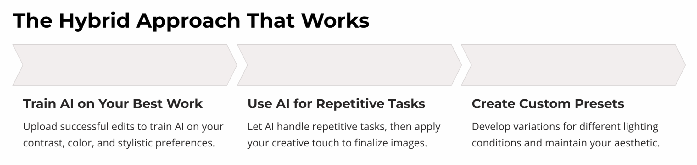 Here’s how top photographers maintain their signature look while leveraging AI: